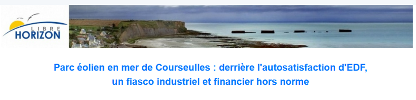 L'association Libre Horizon a déclaré samedi 06/02/2026 un « fiasco industriel et financier » concernant le projet de parc éolien en mer de Courseulles-sur-Mer (Calvados), porté par EDF et situé face aux plages du Débarquement, notamment Arromanches.
